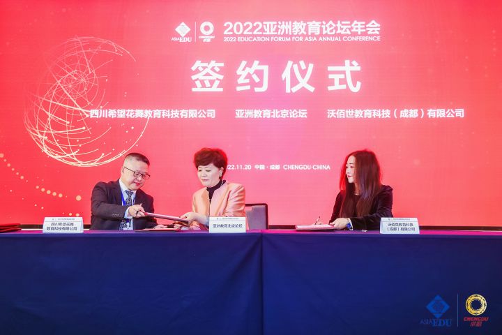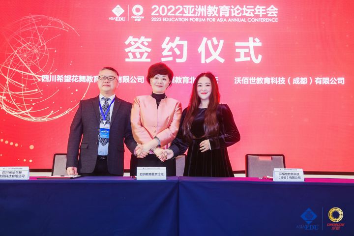 此次2022亚洲教育论坛年会,WBS TTC沃佰世教育董事长王秀丽女士与四川希望花舞教育科技有限公司总经理张俭先生受邀出席,并与亚洲教育论坛执行秘书长刘秀华女士在论坛年会上正式签约,共同携手培养符合国际标准和产业发展需求的专业人才,打造为区域经济赋能的产教融合生态链,深化中德两国在职教领域的合作。